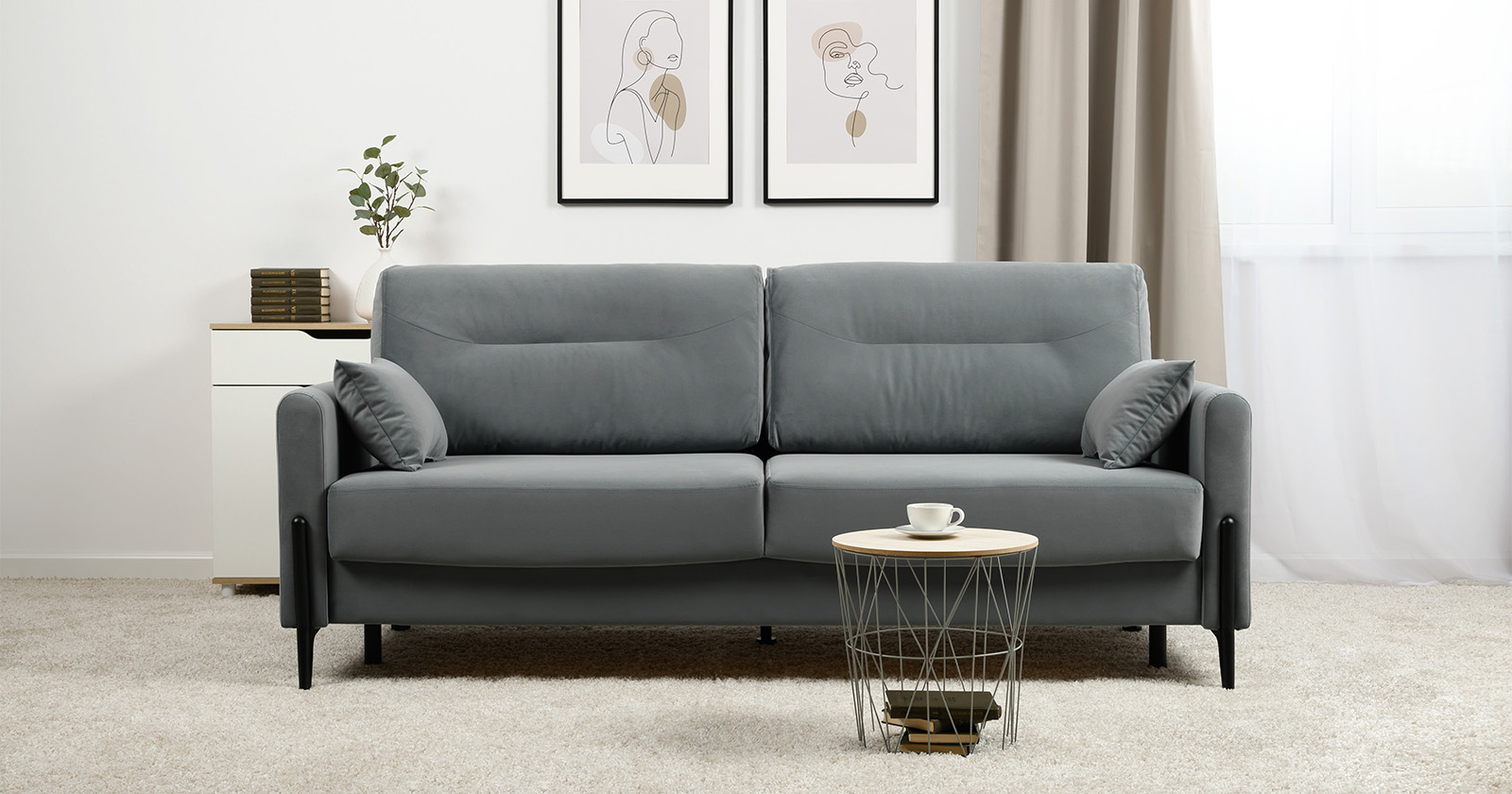 Барселона - современный диван, стиль которого удачно подчеркнут элегантными металлическими опорами.