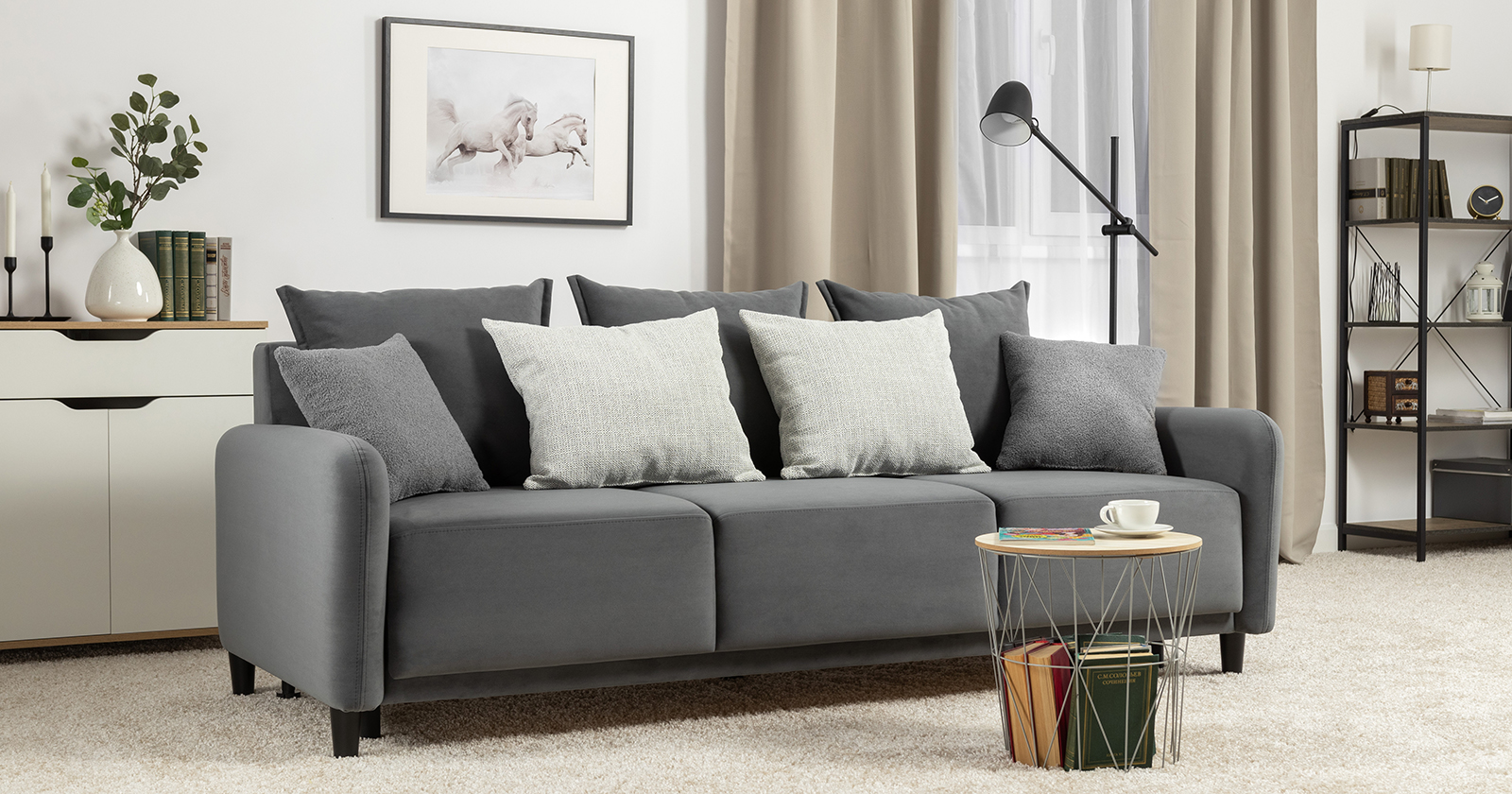 Диван-кровать прямой Дакота ТД 586 велюр Vendetta 11 графитовый серый, Albus Zemin 1735 z1 col 2 белый, Romeo 06