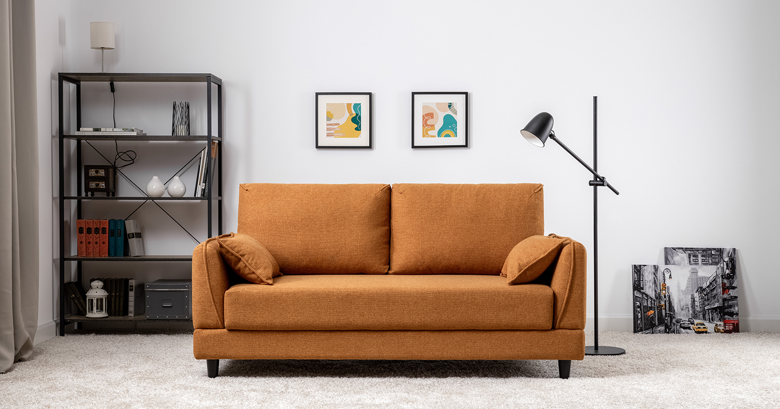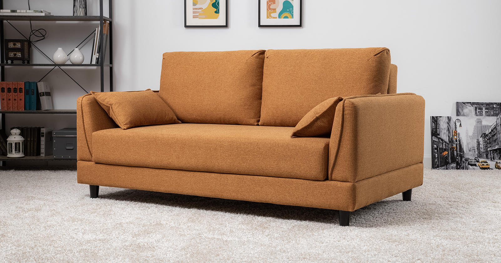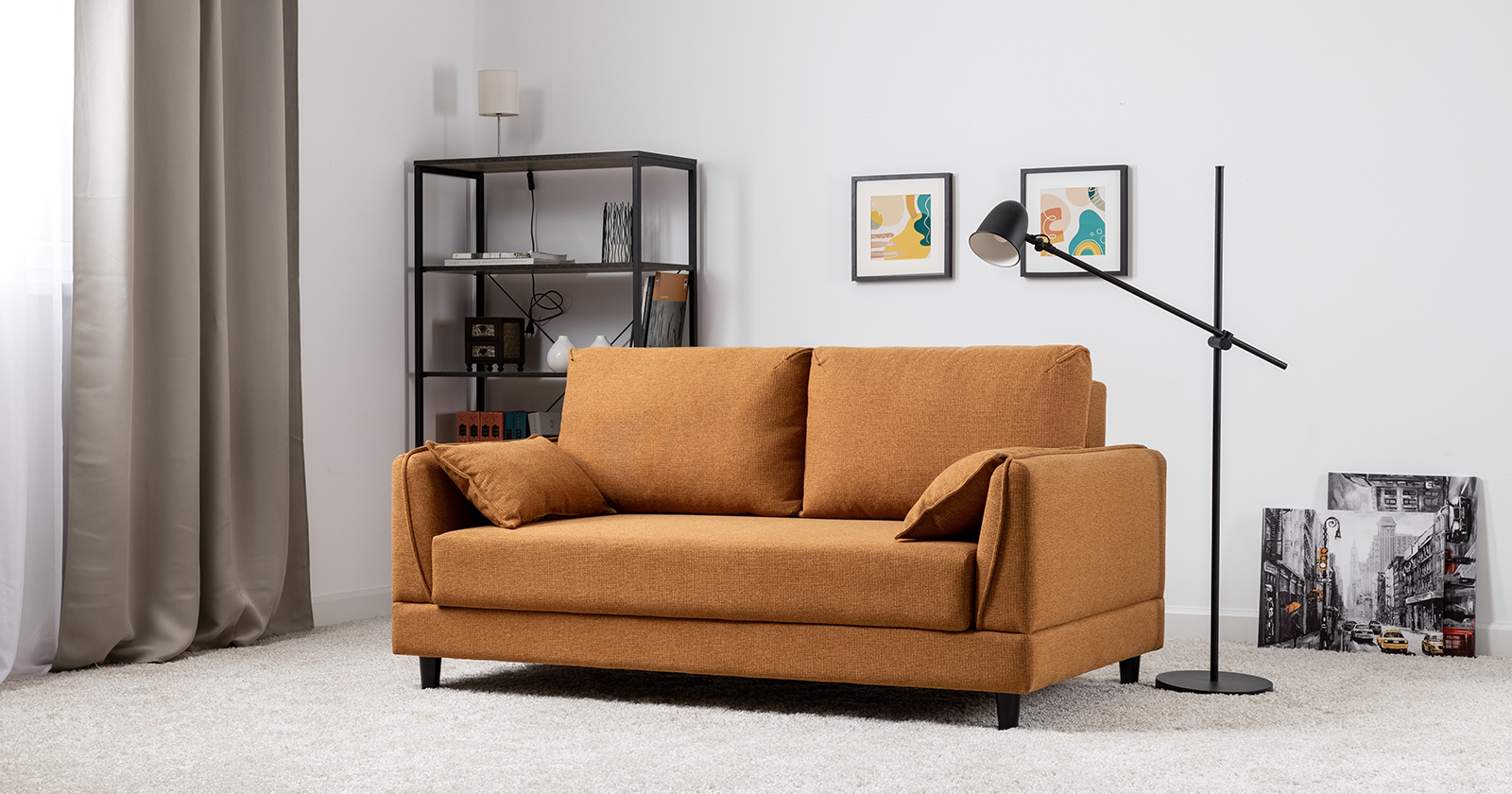 Лаконичный дизайн с деревянными ножками и узкими подлокотниками удачно дополнит не только интерьер гостиной, но и кабинета, и кухни. Кроме того, диван Макс позволяет организовать спальное место в ограниченном пространстве.
