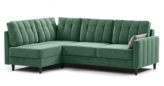 Диван-кровать угловой Арно ТД 566 велюр Лаки 20 хвойный зеленый, Vertical 910 молочно-серый, сборка на любую сторону