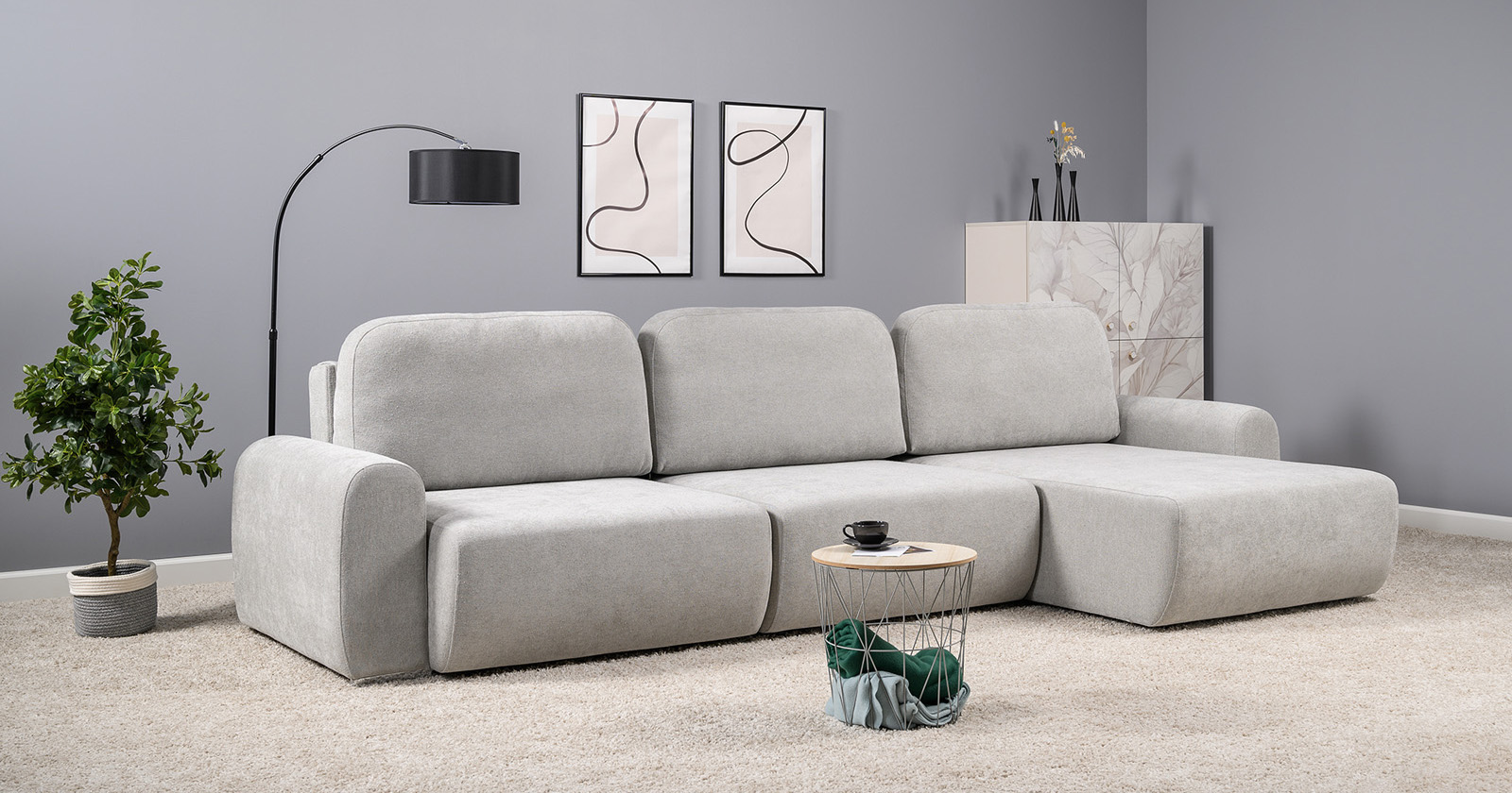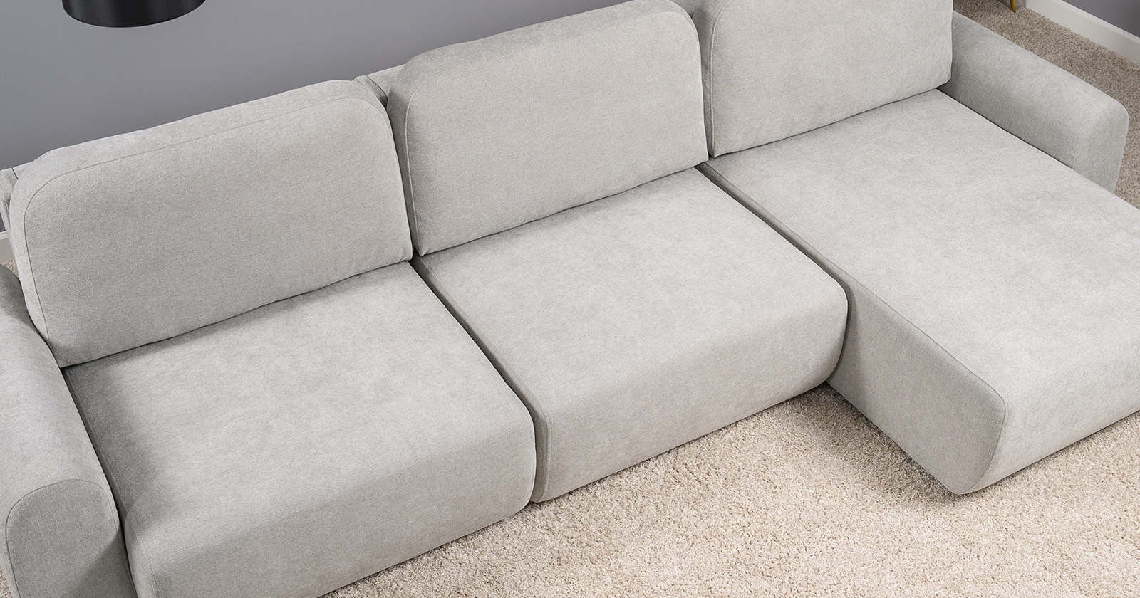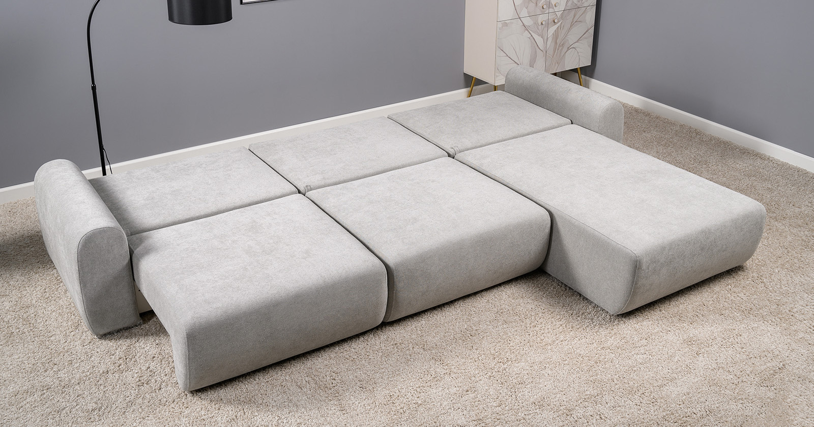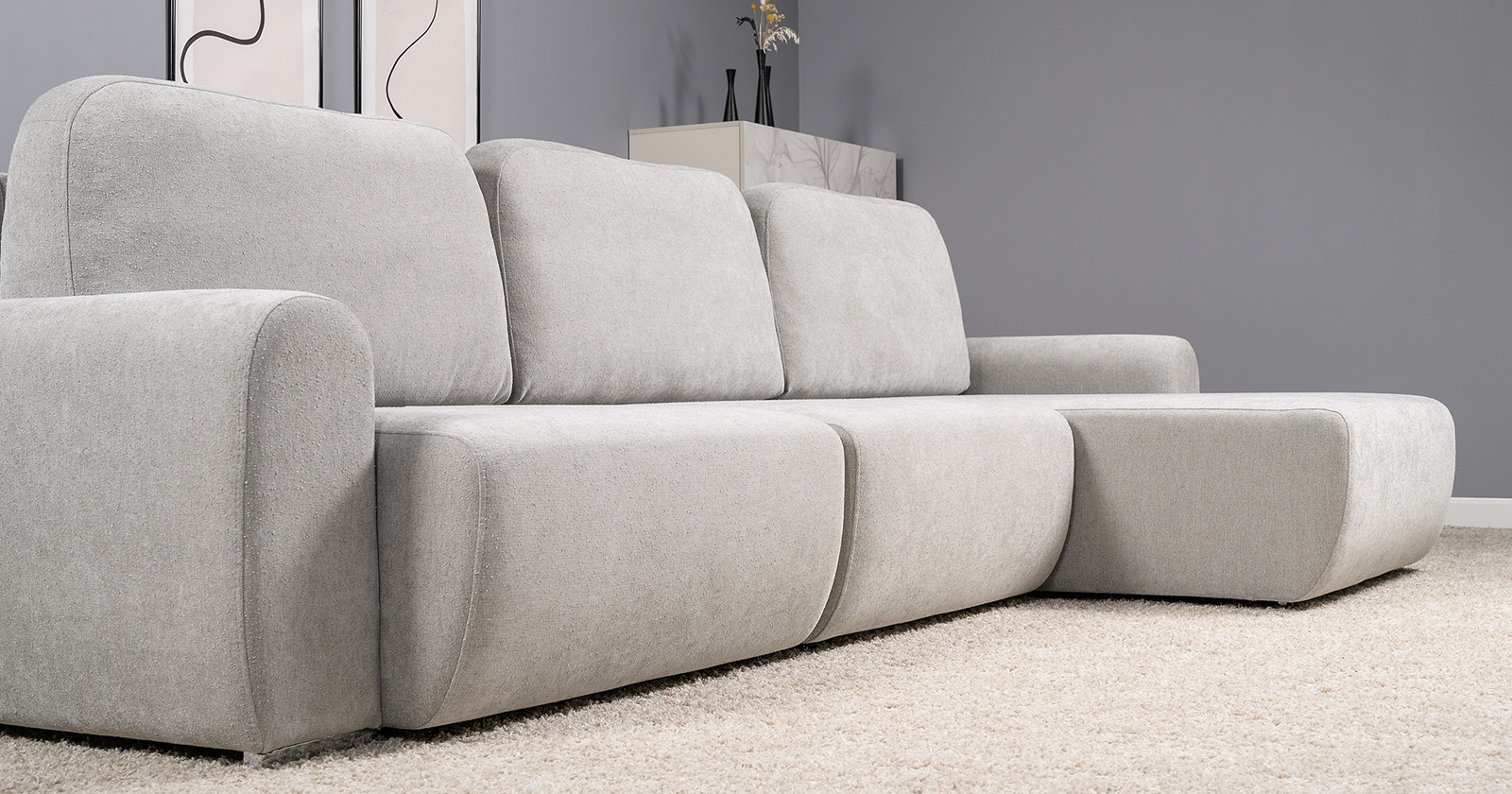 Диван-кровать угловой Тэдди 1506 композиция 3, букле Pique 011 серый, модульная система, сборка на любую сторону