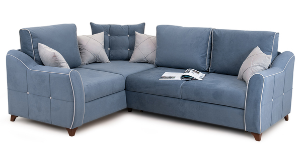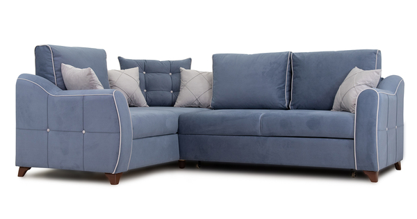 Диван-кровать угловой Тэдди 1504 композиция 3, букле Pique 009 синий, модульная система, сборка на любую сторону