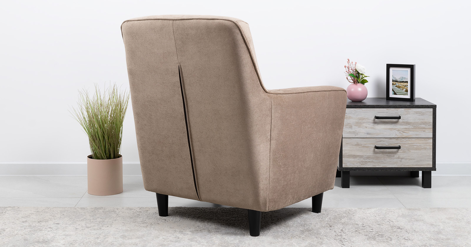 Лаконичное кресло Арно с комфортной посадкой дополнит современный интерьер. Высокие ножки из массива делают кресло визуально лёгким и уместным в комнате любой площади, а задняя спинка в ткани основы позволит использовать его для зонирования пространства. Модель выполнена в тактильно приятном микровелюре в трендовых цветах.