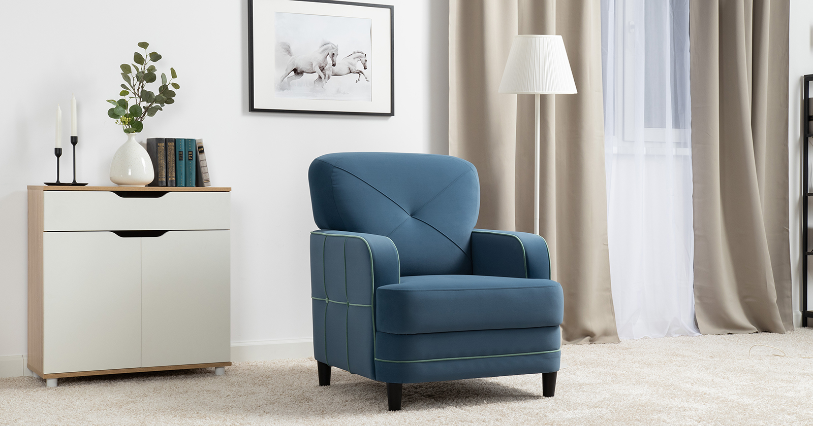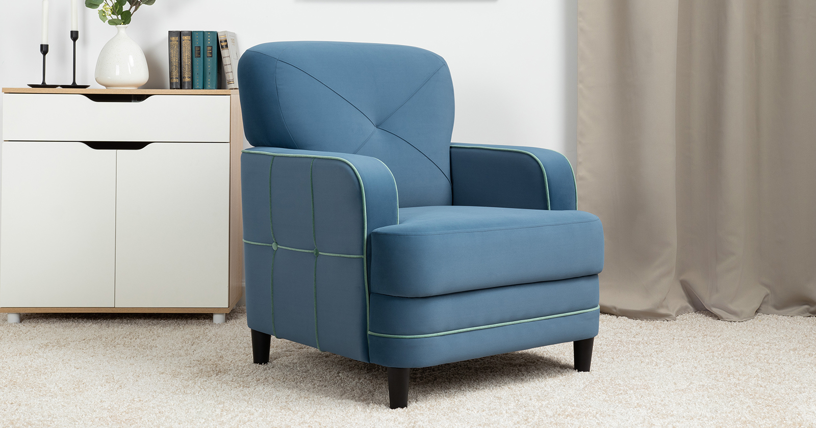 Кресло для отдыха Черри ТК 285 велюр Irida 07 синий, Эвита пистачио ментоловый