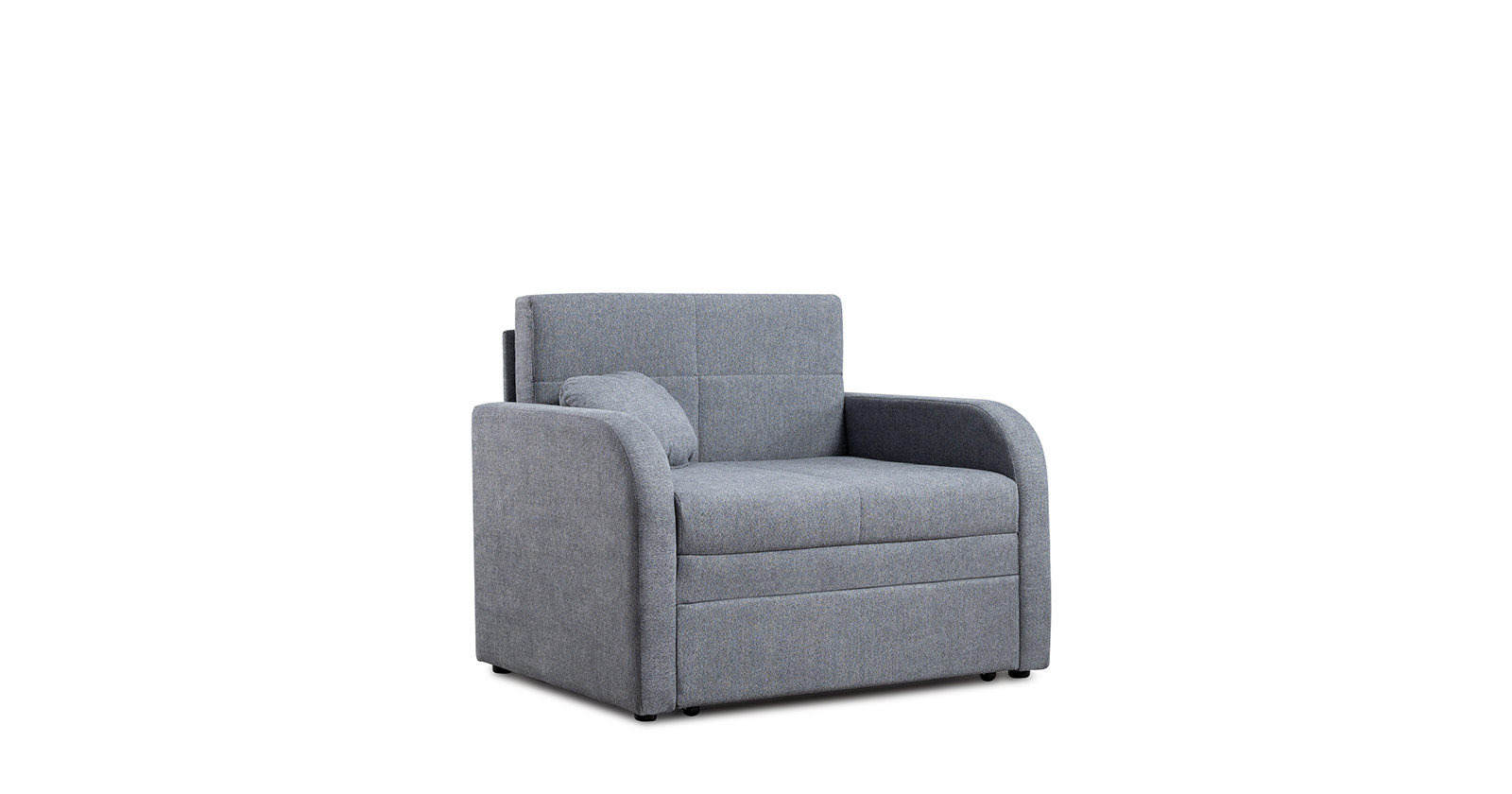 Коллекция выполнена в современном минималистичном стиле с мягкой обивкой из износостойкой ткани и декоративной стежкой, подчеркивающей геометрию форм. Механизм трансформации обеспечивает дополнительное спальное место, делая мебель не только эстетичной, но и максимально функциональной для небольших пространств.