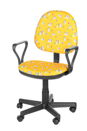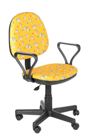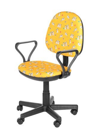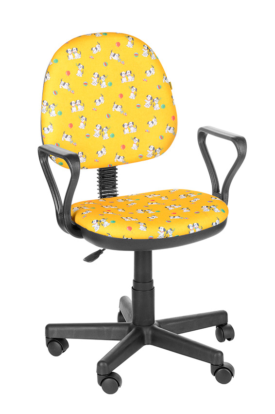На фото кресло с подлокотником Самба в ткани Т - 27ЖЛ (далматинцы на желтом) на крестовине пластик.