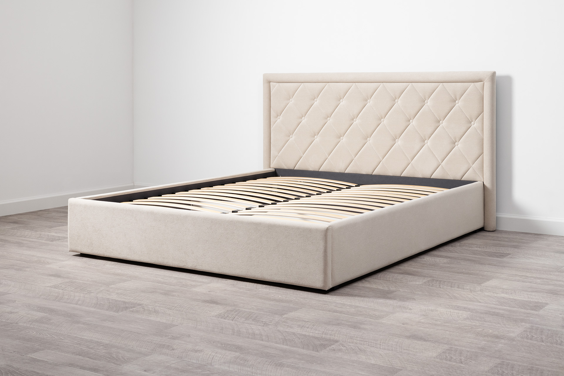 Кровать Марион — это идеальное сочетание стиля и комфорта. Элегантное изголовье оформлено стежкой в виде классической каретной стяжки, украшенной декоративными пуговицами, что придаёт изделию выразительный и утончённый вид. По всему периметру кровати проходит аккуратный валик, подчеркивающий геометрию и завершённость формы.