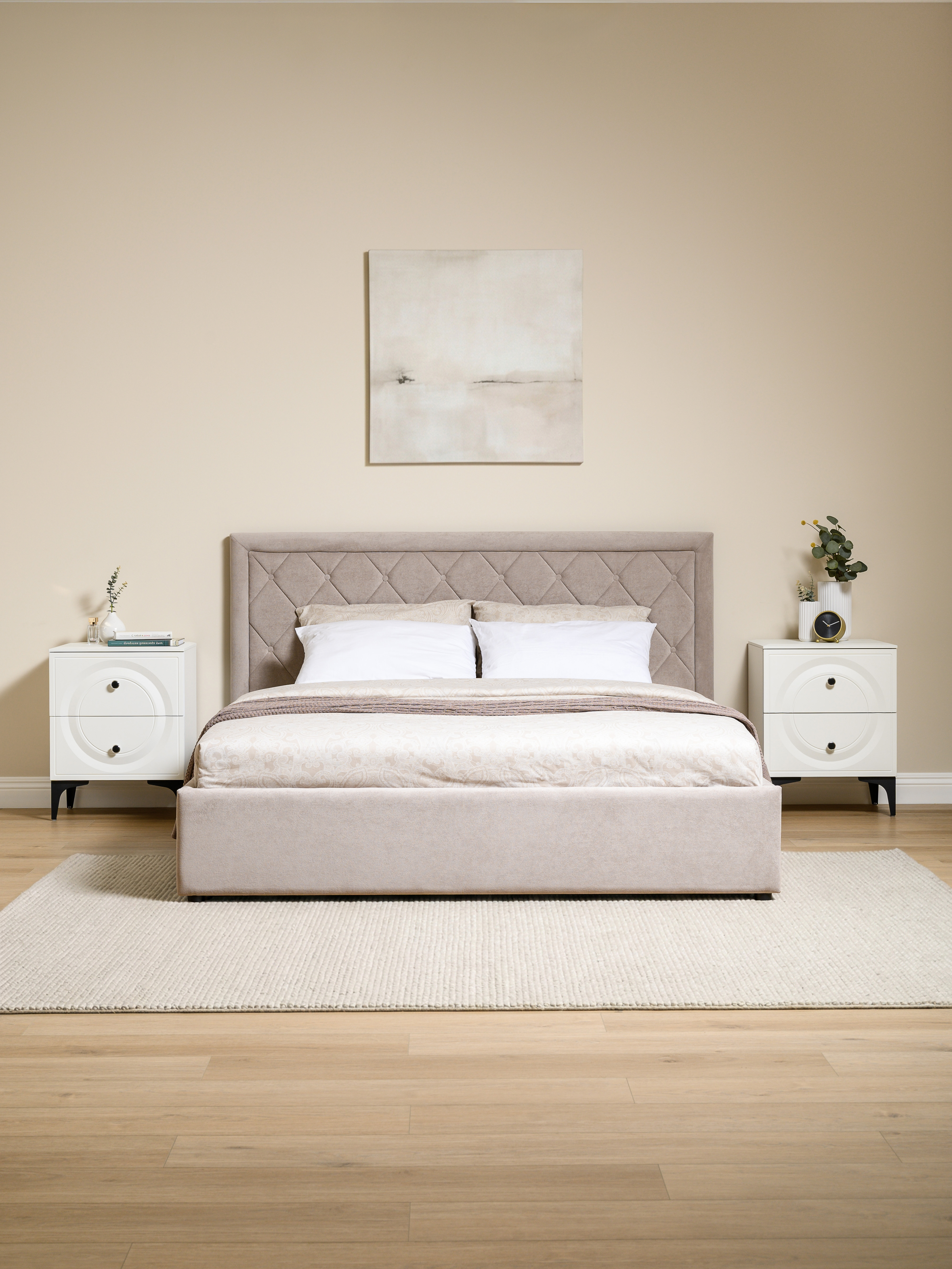 Кровать Марион — это идеальное сочетание стиля и комфорта. Элегантное изголовье оформлено стежкой в виде классической каретной стяжки, украшенной декоративными пуговицами, что придаёт изделию выразительный и утончённый вид. По всему периметру кровати проходит аккуратный валик, подчеркивающий геометрию и завершённость формы.