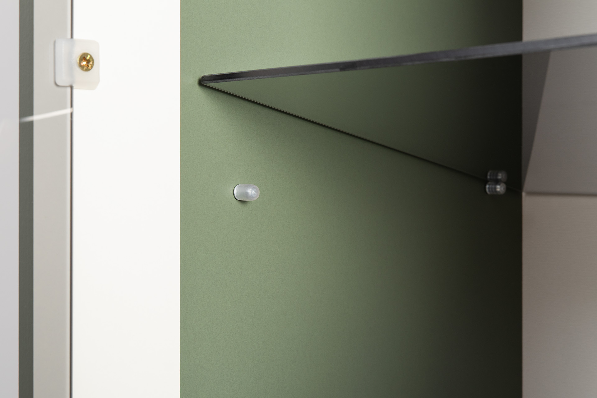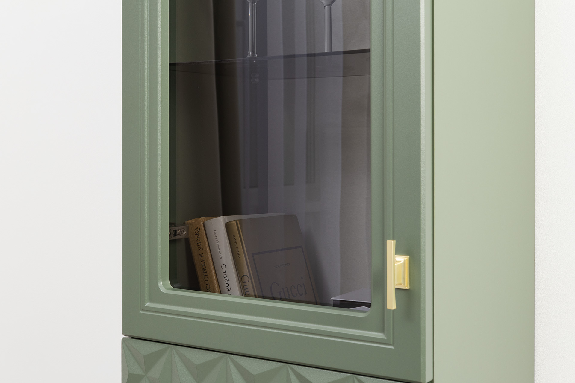Шкаф навесной Марион 16.334 дымчатый зеленый K521, олива шагрень AG 1050 ПВХ (собирается на любую сторону)