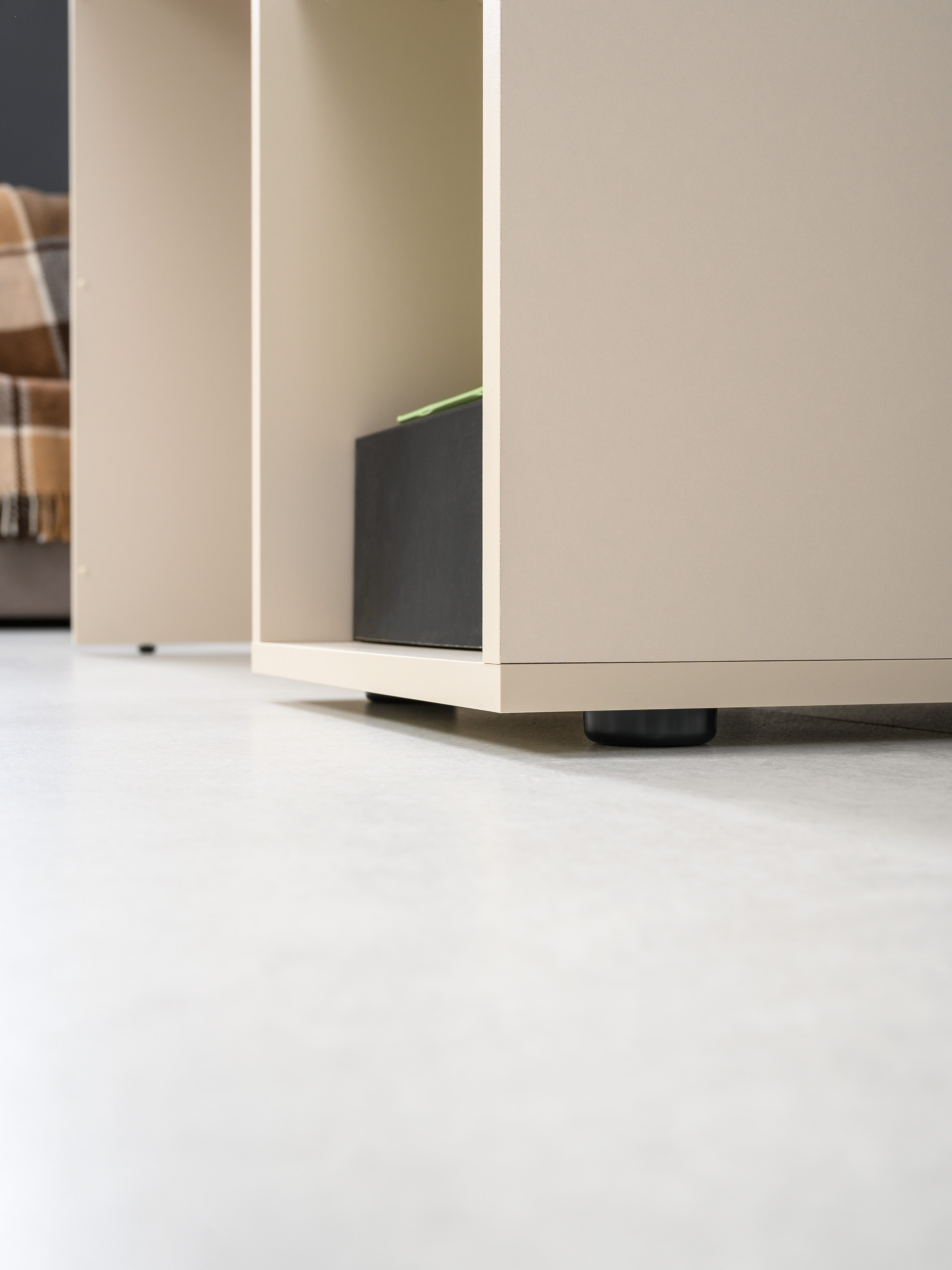Торцевые полки можно собрать с наружной или внутренней стороны стола