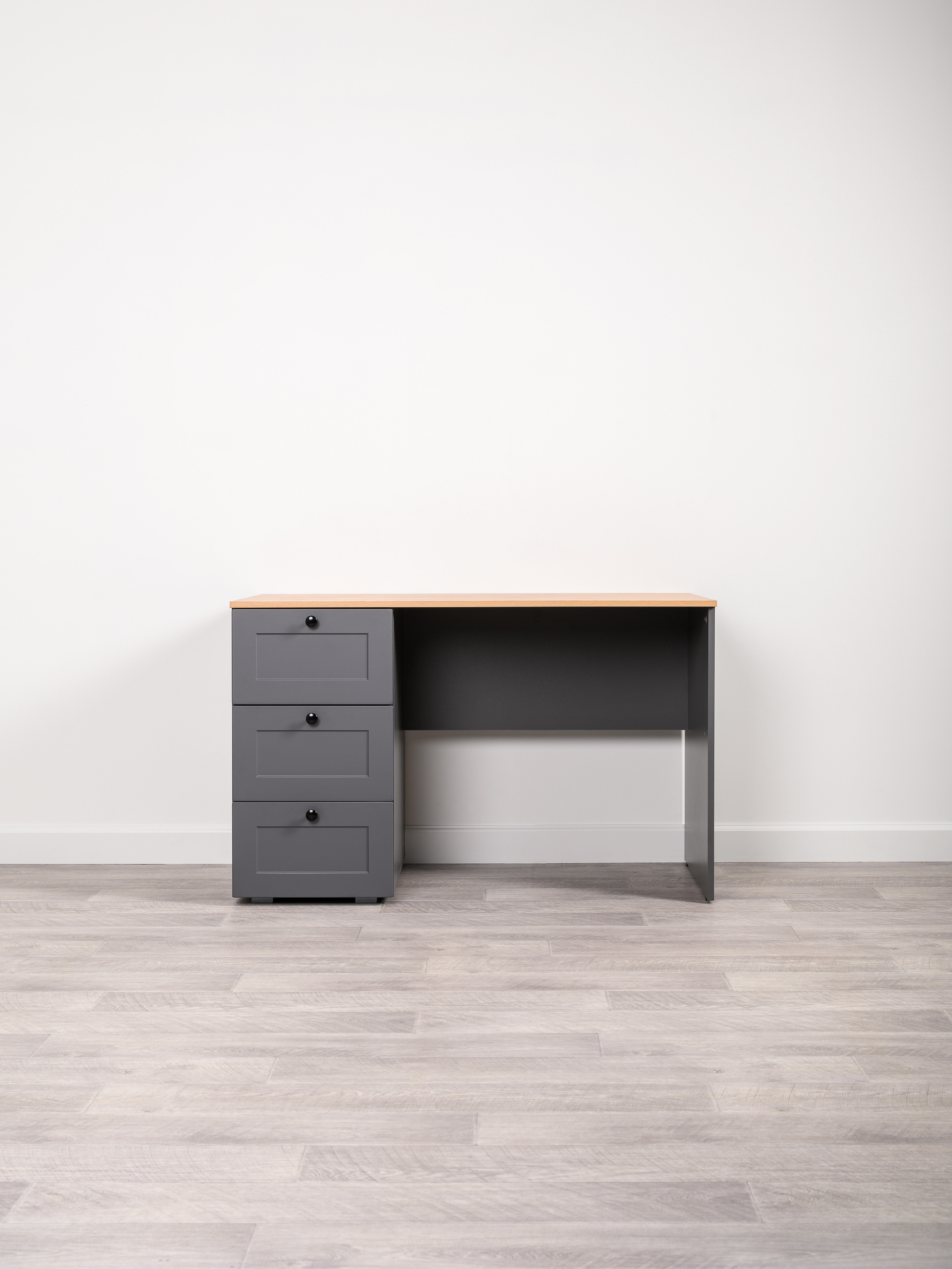 Стол письменный Остин 12.159 серый графит 0162 РЕ, дуб золотой CRAFT, графит ZB 856-2 ПВХ, сборка на любую сторону