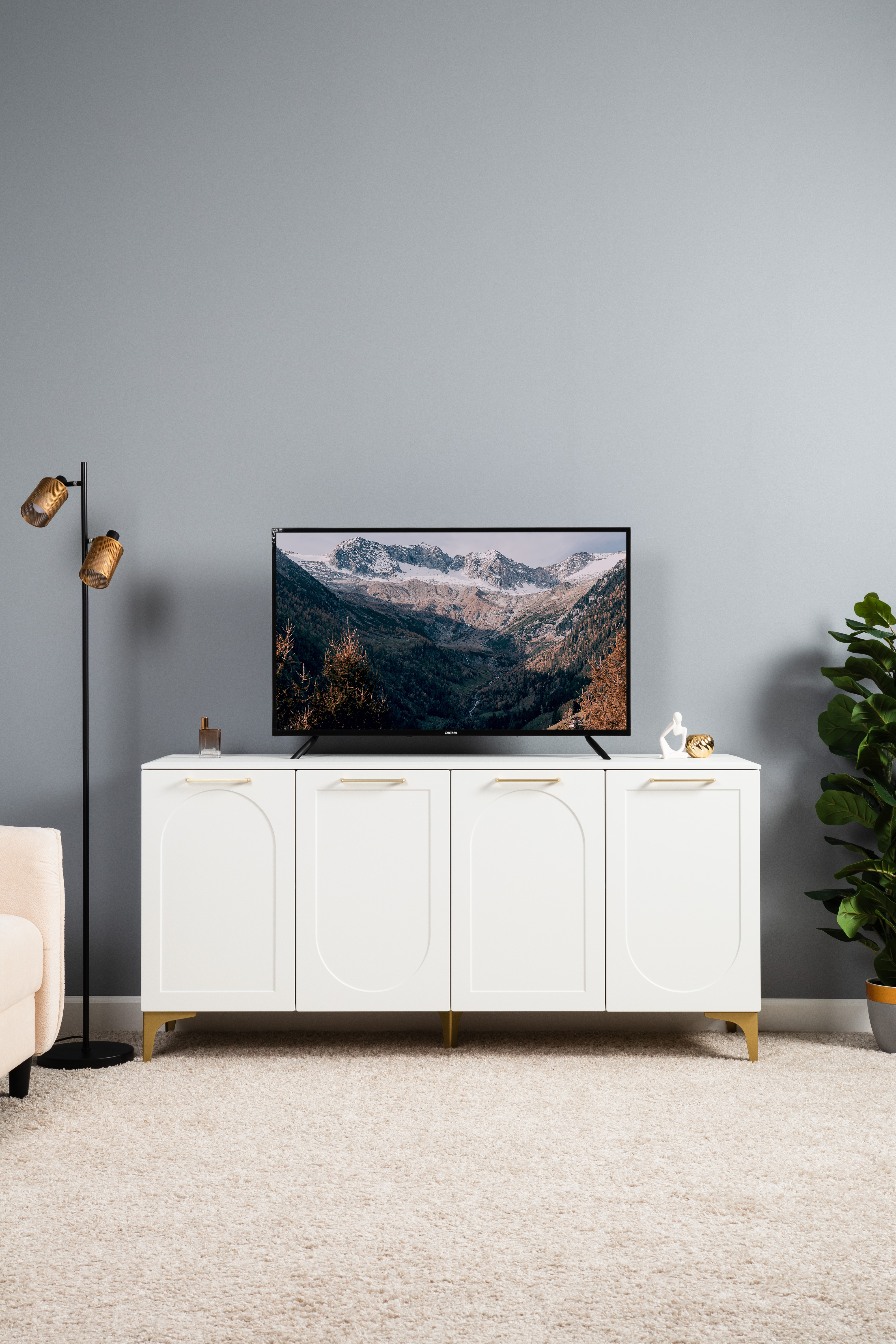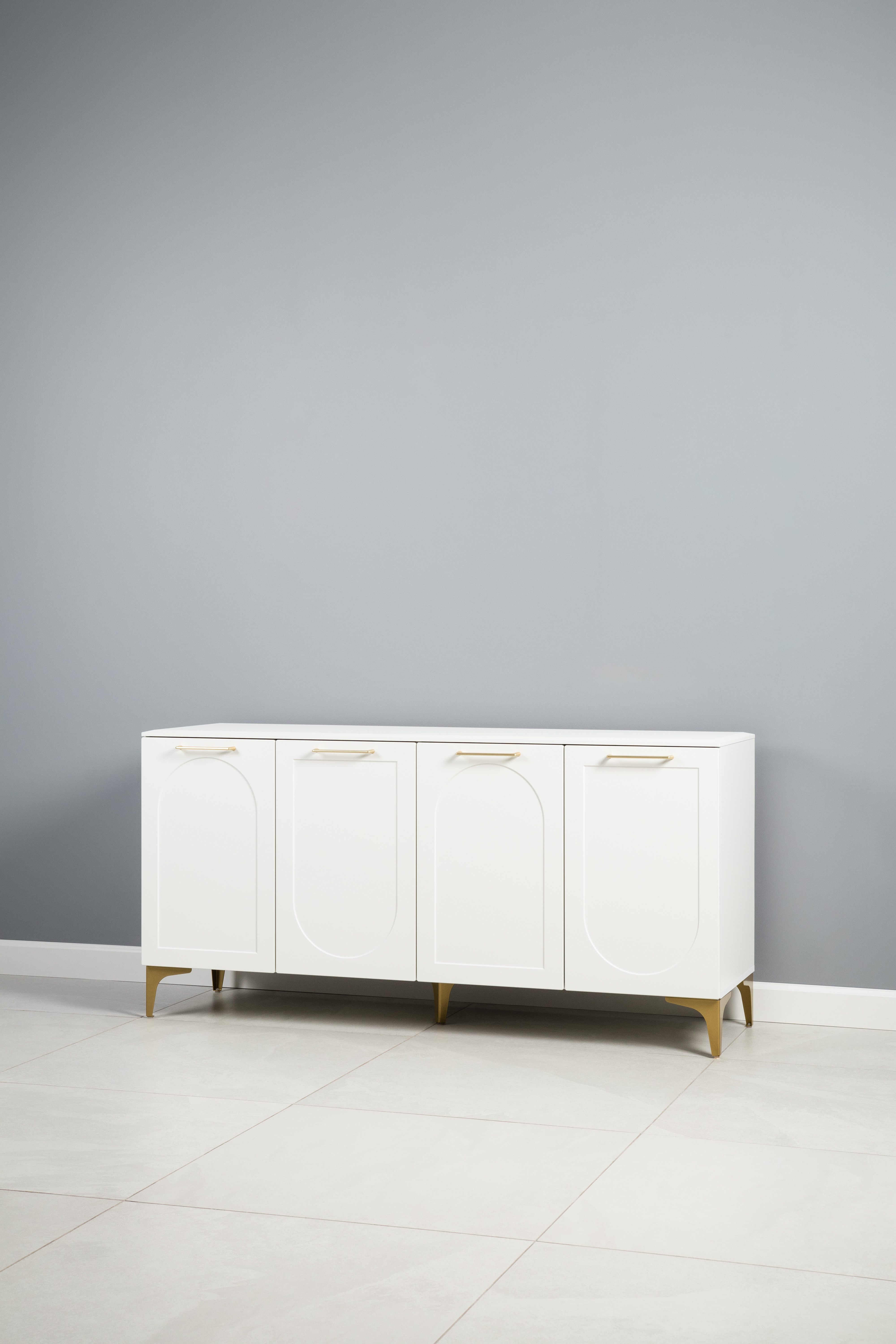Тумба под ТВ в гостиную Петра 13.281 белый PE шагрень, милк софт ПВХ, бетон чикаго беж ПВХ